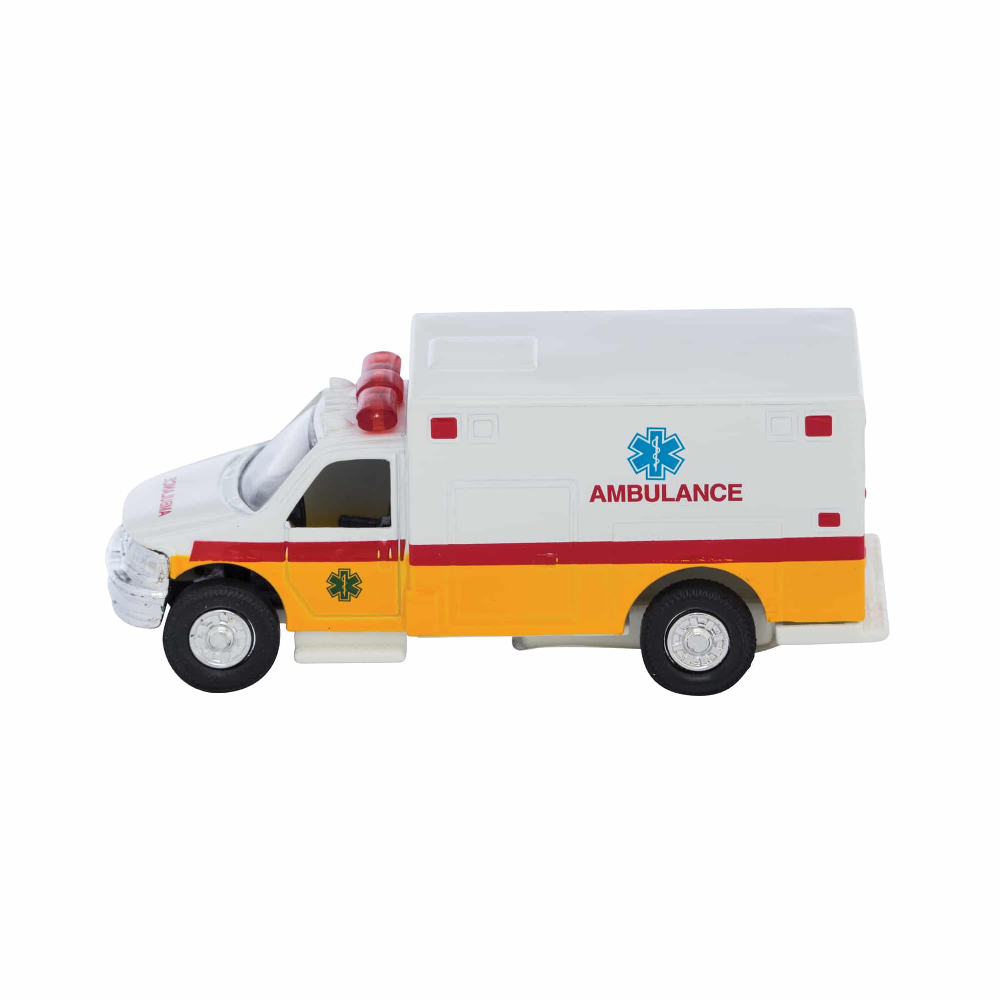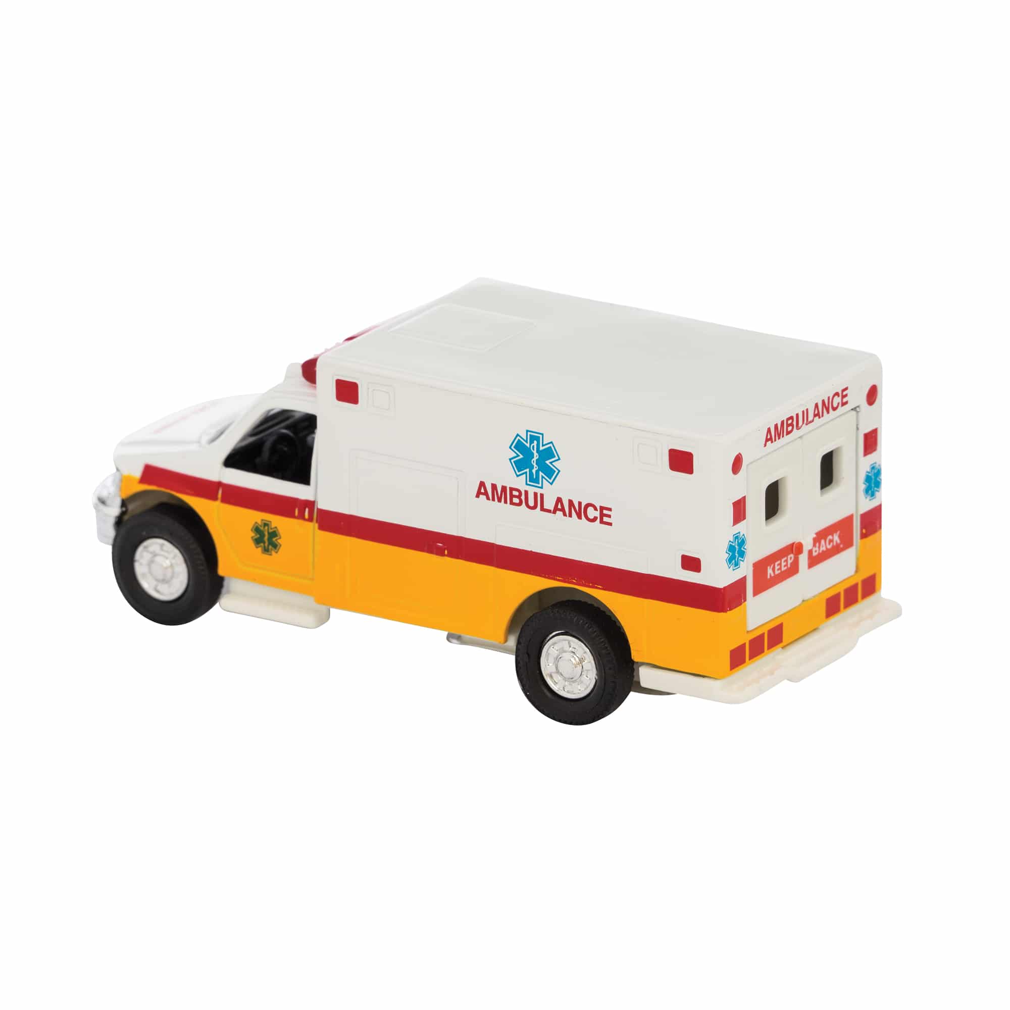 The Schylling Diecast Ambulance Is Made From Real Metal With A Hand Painted Finish. Features A Pull Back Motor, And Die Cast Body. Available In Assorted Colors, Each Sold Separately.